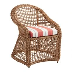 Featuring a washed-terracotta, white and gray striped Sunbrella cover, our premium custom-made cushion is gusseted for enhanced comfort. Sunbrella performance fabric is crafted of highly saturated, U.V.-stable pigments that don’t fade, it resists mold and mildew and is durable and easy to clean. Since 1961 Sunbrella has produced innovative materials while striving to make minimal impact on the environment and never sacrificing beauty or style.
