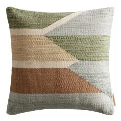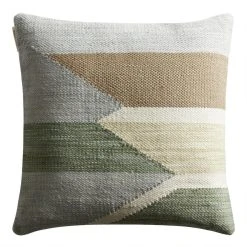 This abstract throw pillow is the key to a relaxing home decor vibe that will be inviting to all. Made with recycled water bottles that are given a new purpose, this toss pillow is decorated with geometric angles in two versatile color palettes. Crafted in India, this pillow comes with a removable insert and a solid ivory back.