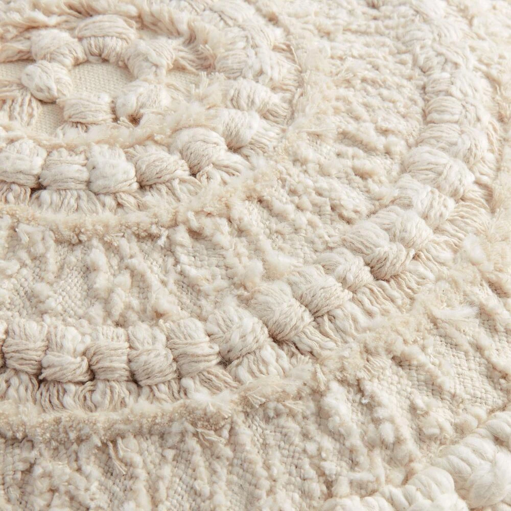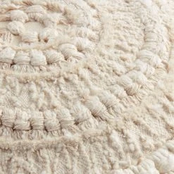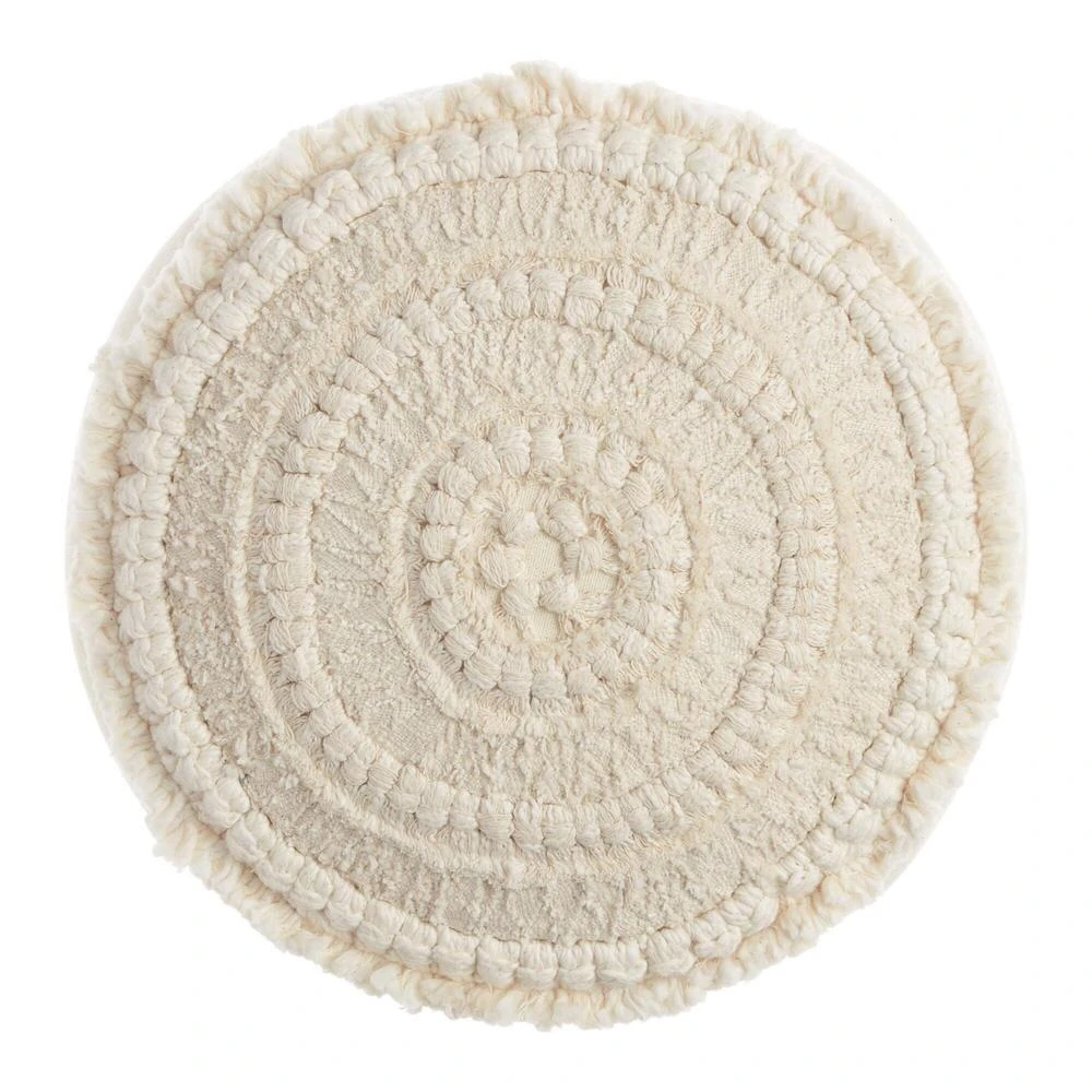 Concentric circles in a variety of colors create a halo effect on our exclusive round throw pillow. Made with a texture-rich feel and a solid color on the reverse, this toss pillow is a plush, pleasurable home decor piece that instantly warms up any couch, bed or chair. Choose from monochromatic ivory or a subtle jadeite green hue.