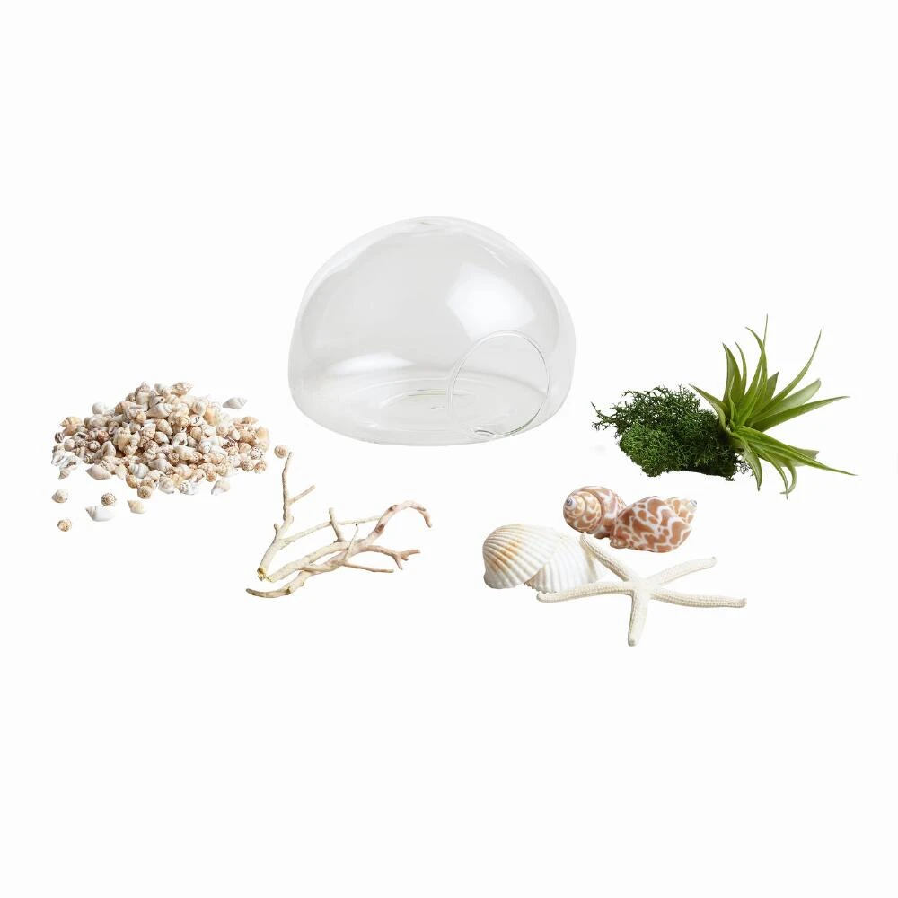 Fix our terrarium to your wall to refresh the look and atmosphere of any room. Featuring a tillandsia succulent and a collection of seashells, pebbles and starfish, this easy-to-maintain mini ecosystem thrives with only a light misting of water every few days.
