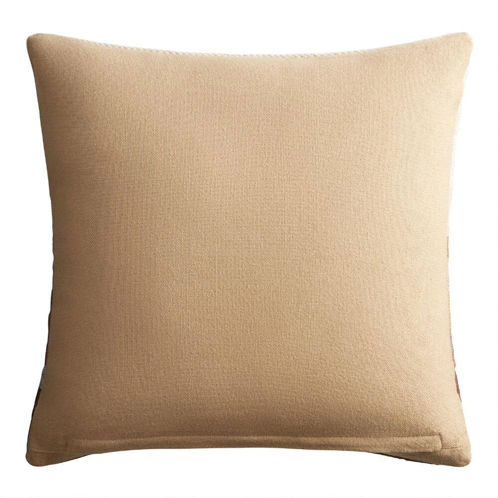 Consciously crafted with an innovative recycling process that gives discarded water bottles new life, our ultra-soft throw pillow features a stunning sunset woven across a natural-hued background. With a solid tan back and a removable insert, this toss pillow has a textural softness that’s perfect for cozying up.