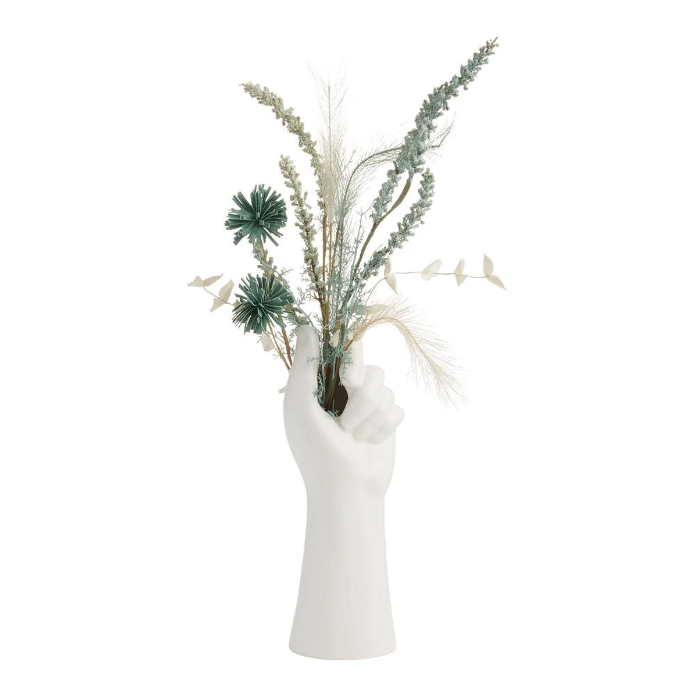 This graceful white vase is sculpted into a five-fingered design, made to look like it’s grasping the bouquet of flowers you place inside. Modern and playful, it keeps artful style close at hand.