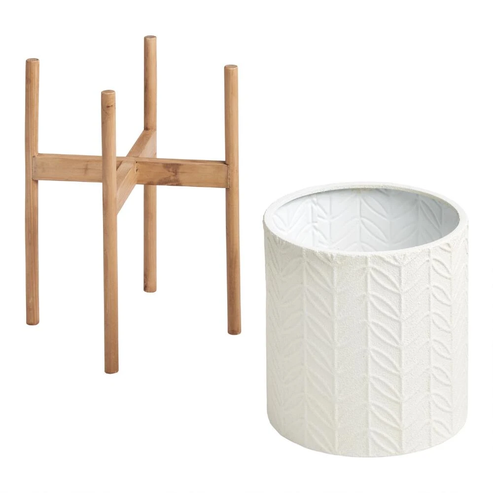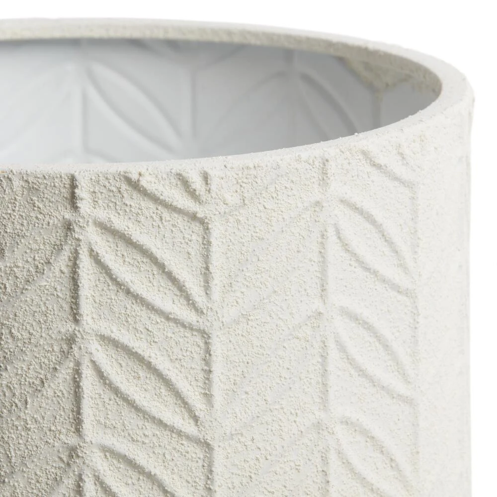 With its streamlined form and sprayed, white stone-like finish across an embossed leaf design, our medium lightweight planter possesses a modern sensibility. You can use it with or without the included natural-pinewood stand and let your creative eye achieve the perfect greenery aesthetic for your home decor.