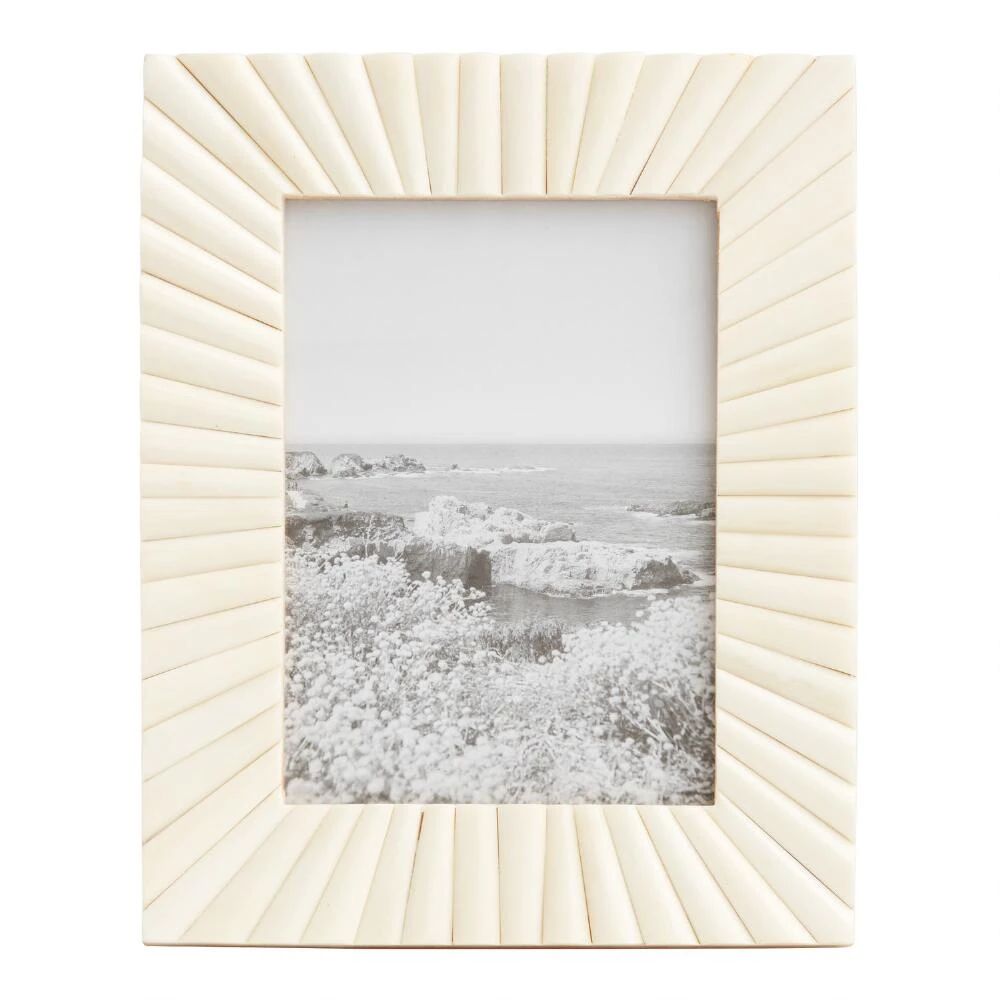 Create a radiant display of a favorite photo memory with our exclusive 5×7 picture frame. Handcrafted by skilled artisans of sustainably sourced bone, this sophisticated frame features a sunray-style design with ribbed texture that adds dimension to any tabletop decor display.