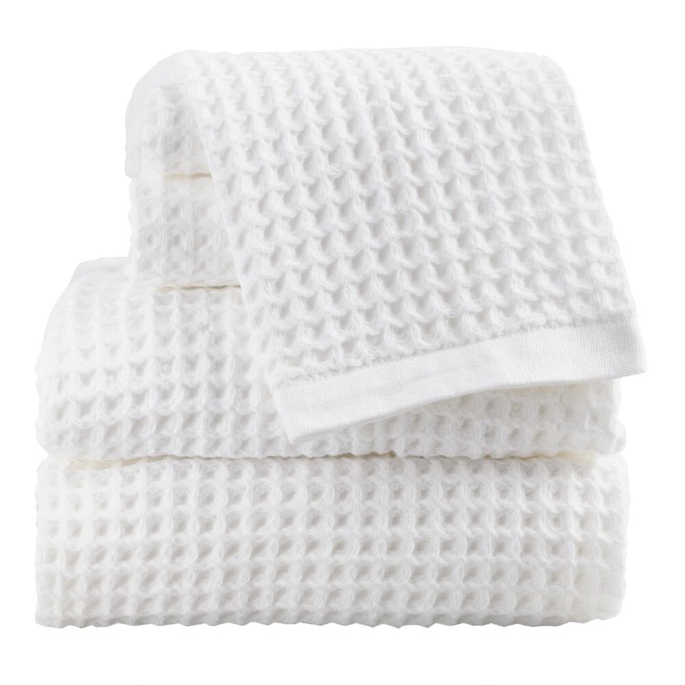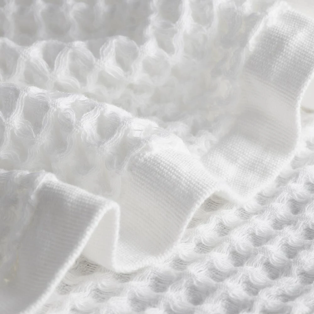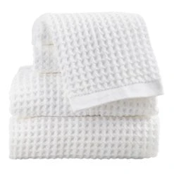 Experience spa-like luxury in the comfort of your home with our exclusive white cotton waffle-weave hand towel. It has a soft touch and adds a sophisticated look to any washroom.