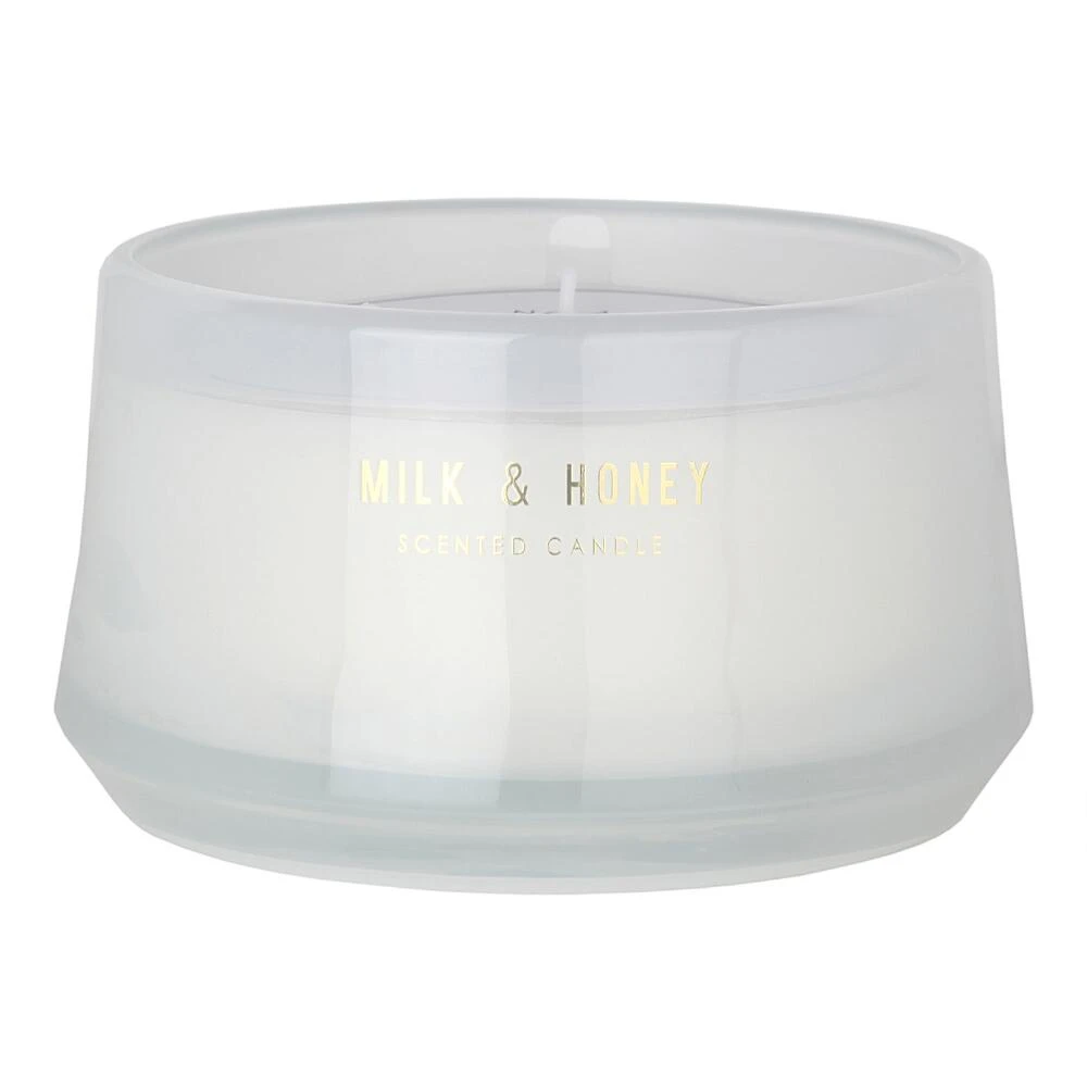 - Hand-poured scented wax in glass jar