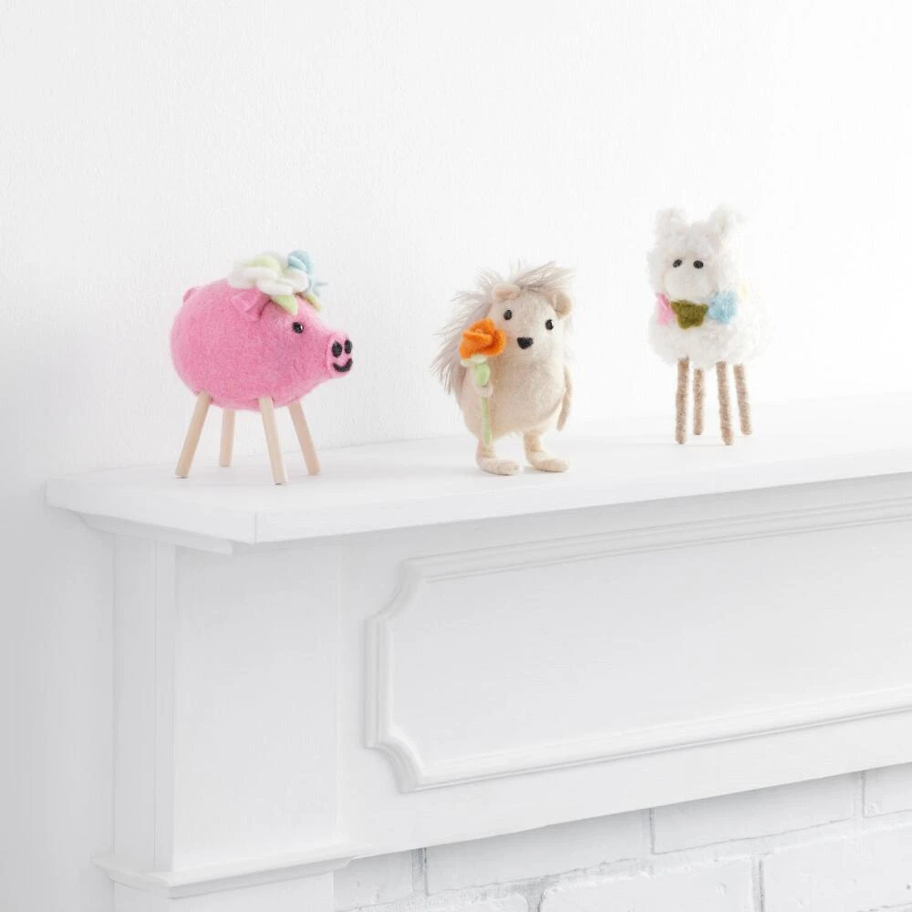 This woolly handmade lamb is soft, sweet and ready for spring. Cozily fleeced and festooned with a flower necklace, it’s especially adorable displayed alongside our other animal accents.