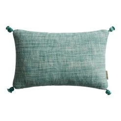 Picture an island escape full of sophistication and relaxation to tune in to the vibe of this elegant indoor-outdoor lumbar cushion. Made with an innovative process that puts recycled water bottles to good use, it comes in a range of muted tropical hues that feature a modern, variegated finish that adds a chic sun-faded look to the woven texture. A plump onion tassel at each corner completes its elevated-boho appeal.