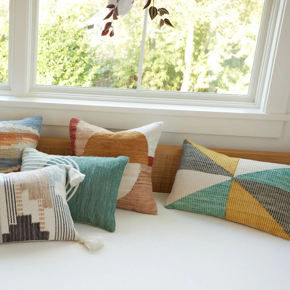 Featuring a kaleidoscopic design with vibrant geometric shapes, this comfy lumbar pillow lends effortless style and support to seating and outdoor decor. An understated accent for any indoor or outdoor space, this toss pillow is made in India with an innovative process that puts recycled water bottles to good use and includes a plush removable insert.