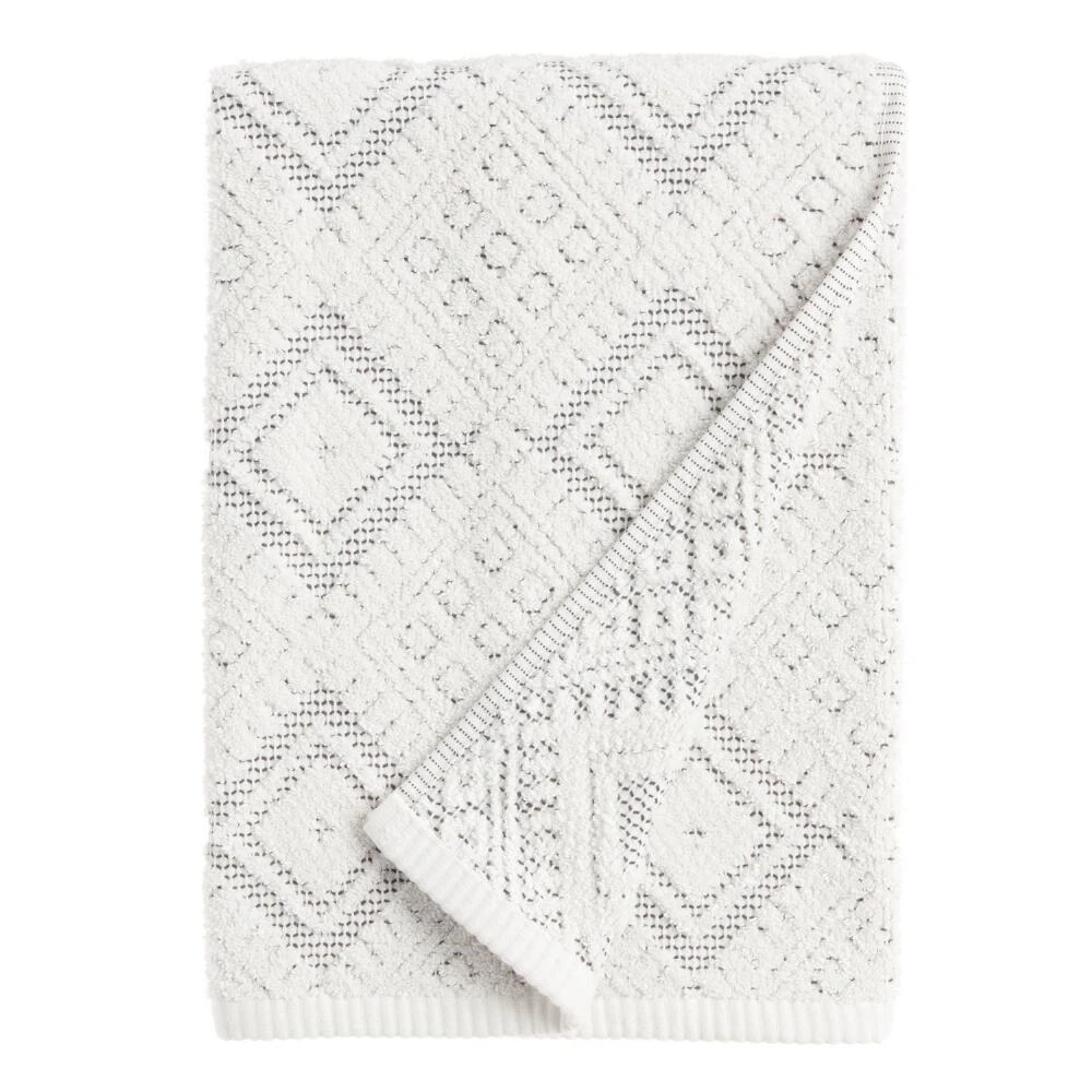 Prized for its incredible softness and superior absorbency, our premium ivory and black Turkish bath towel is made from extra-long cotton fibers. A sculpted diamond pattern and woven honeycomb detailing lend a textural touch.
