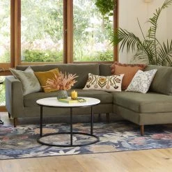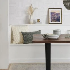 World Market Ivory and Green Woven Square Indoor Outdoor Throw Pillow