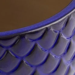 World Market Ridley Blue Ceramic Scallop Geo Outdoor Planter
