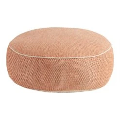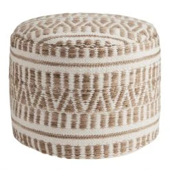 World Market Round Taupe And Ivory Geometric Indoor Outdoor Pouf